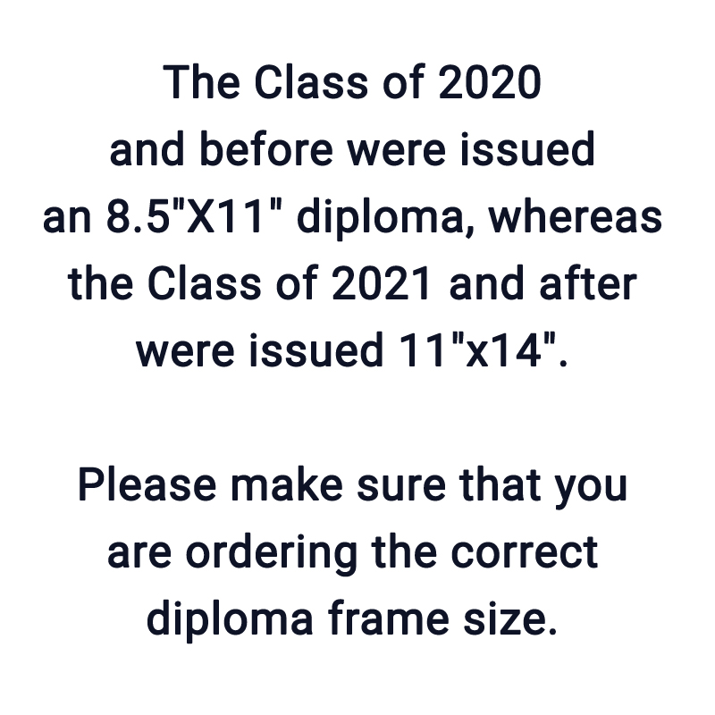 Our Classic Photo Diploma Frame fits an 11”X14” diploma. Please note that the Class of 2021 and after were issued an 11"X14" diploma, if you are with the Class of 2020 or before you will need to purchase an 8.5"x11" frame. It features a 1 5/8” wide rich-burnished cherry hardwood molding, along with an exclusive, proof-struck, gold minted medallion of the official seal of St. Mary's College of Maryland, embedded on a custom double matte, of navy and gold. The photo that sits above the diploma is of Calvert Hall. All hardwood is Forest Stewardship Council (FSC) certified wood from well-managed forests. Conservation-quality preservation mat board protects your valuable document from the damaging effects of pollutants and contaminants. Easy document insertion and hanging instructions. Adjustable hanging system. For every frame purchased, a tree is planted. Made in the USA, by Framing Success. Frame Dimensions: 28"H X 21"W PLEASE NOTE: DIPLOMA FRAMES CAN ONLY BE SHIPPED VIA FEDEX
