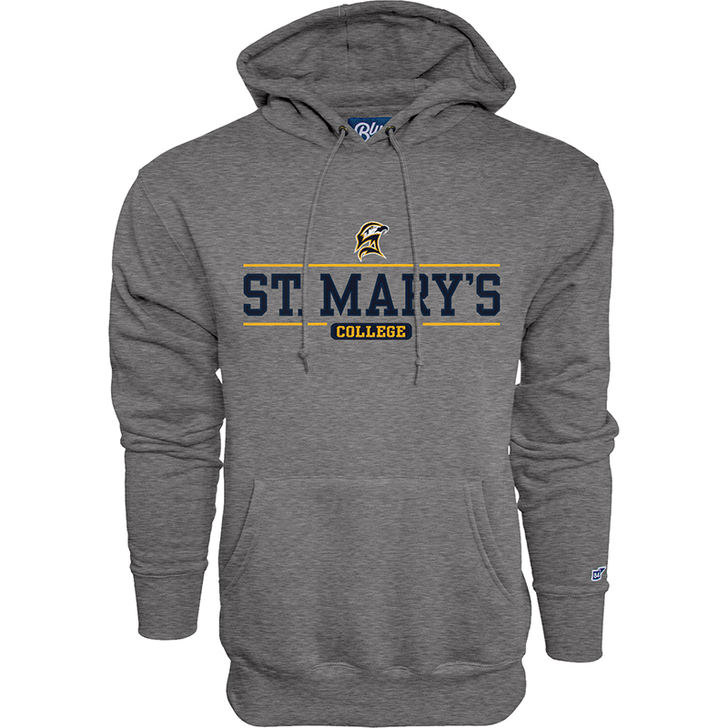 While we called it "embroidery," this popular fleece hoodie features mixed media decoration. We think the three-color hawkhead and the gold trim and letters below are embroidered, while the navy ST. MARY'S and disc are heat seal twill. Regardless, it makes for a terrific looking piece in Blue 84's 8.5 oz. fleece of 55% cotton and 45% polyester. Double-needle cover stsitch on all major seams, three-piece hood, Spandex reinforced rib trim, and taped neck seam. Men's/unisex sizes S-XXXL.